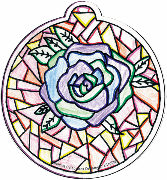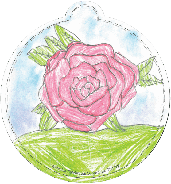 I drew Alabama’s state flower, the Camellia, because this flower is known for its pretty color and its sweet smell. Camellias grow all around Alabama’s parks, gardens, and even roadsides. I drew it on a stained glass background to represent the many churches Alabama has that are filled with beautiful stained glass windows.