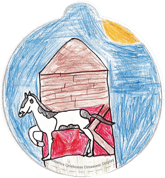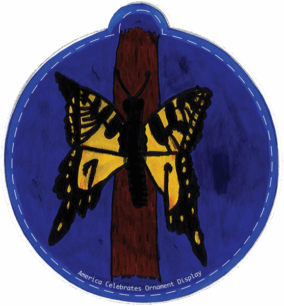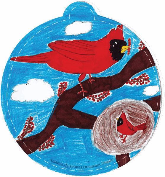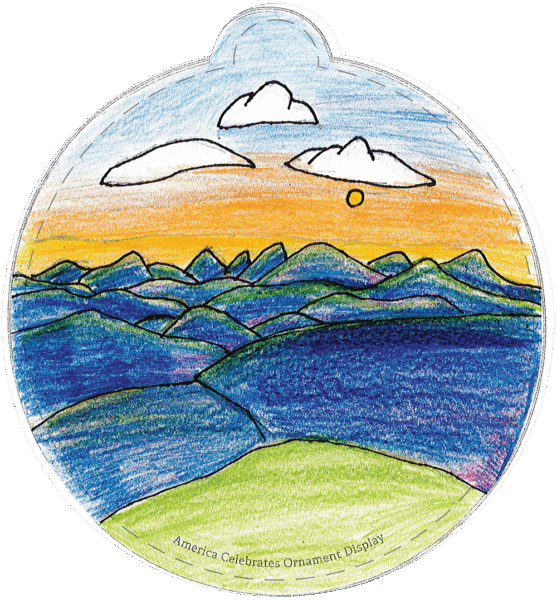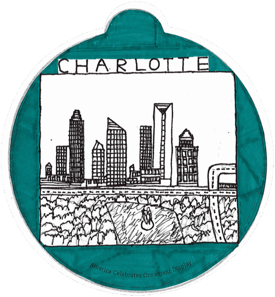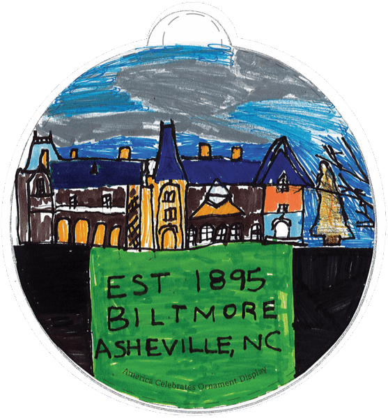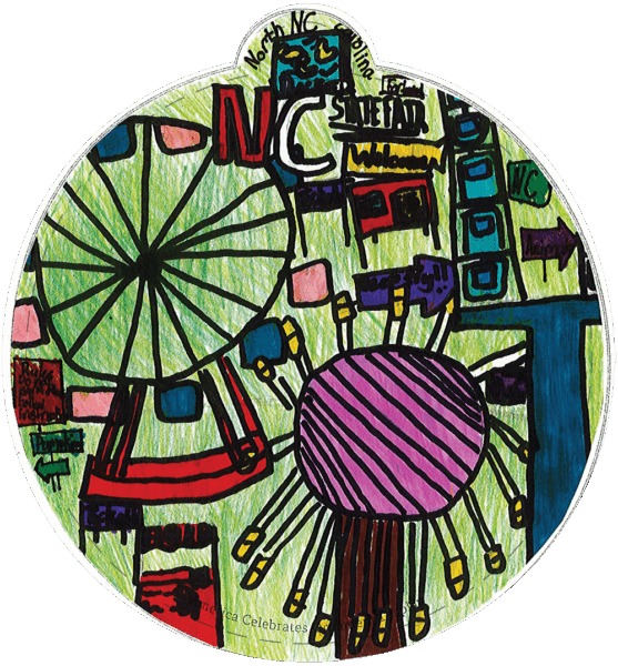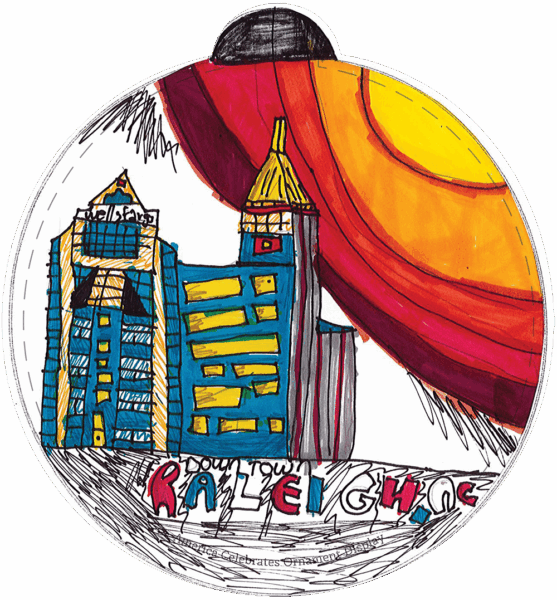 “The fourth-grade students at Hunter GT/AIG Magnet Elementary School spent the school year learning about our state of North Carolina. When they were asked to design their ornaments to the theme, “What makes our state Beautiful”, they were prepared to create designs visually describing North Carolina’s unbelievable landscapes and incredible state symbols as a way to show others how beautiful North Carolina truly is.” -Tara K., Teacher