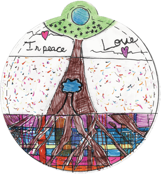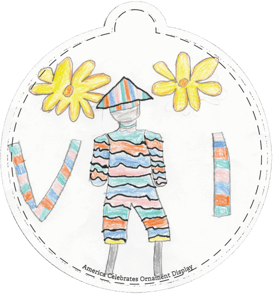 “My class’s ornaments are mostly different objects and places that have cultural and social significance to the People of the Virgin Islands. We went on a virtual field trip around the territory and discussed famous places and things that make the Virgin Islands special. All the students chose to draw and used colored pencils, markers, and oil pastels to create their work. We concluded the process with a one-on-one discussion about why they chose their object or place and what insights they gained through the experience.” – Mr. Ian G. and Ms. Genelyn L., Teachers